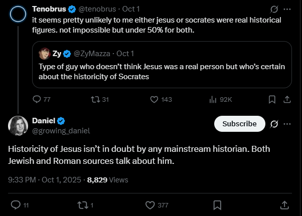 Where Arthur gained chivalry and Socrates gained philosophy, Jesus gained the universe. The kernel of a man became the cornerstone of empires, crusades, cathedrals, and metaphysical systems. No other figure shows so vast a gap between what can be defended historically and what has been believed culturally.