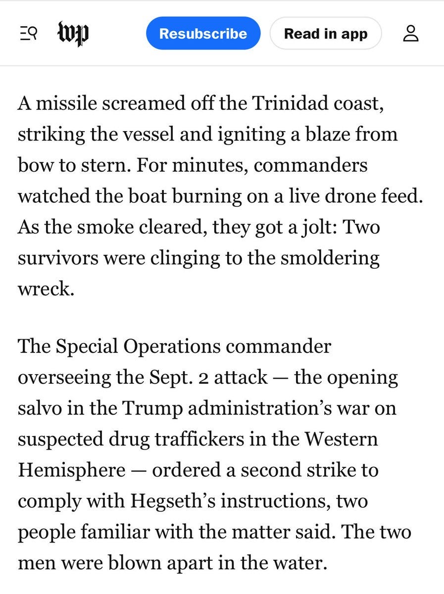 The recent U.S. strike near Trinidad illustrates the point with unusual sharpness. A boat suspected of smuggling drugs was destroyed without warning. When the survivors tried to stay afloat on the wreckage, a second strike killed them as well. There is no plausible legal theory—domestic or international—that can justify either attack. These were intentional killings of civilians outside any armed conflict.
