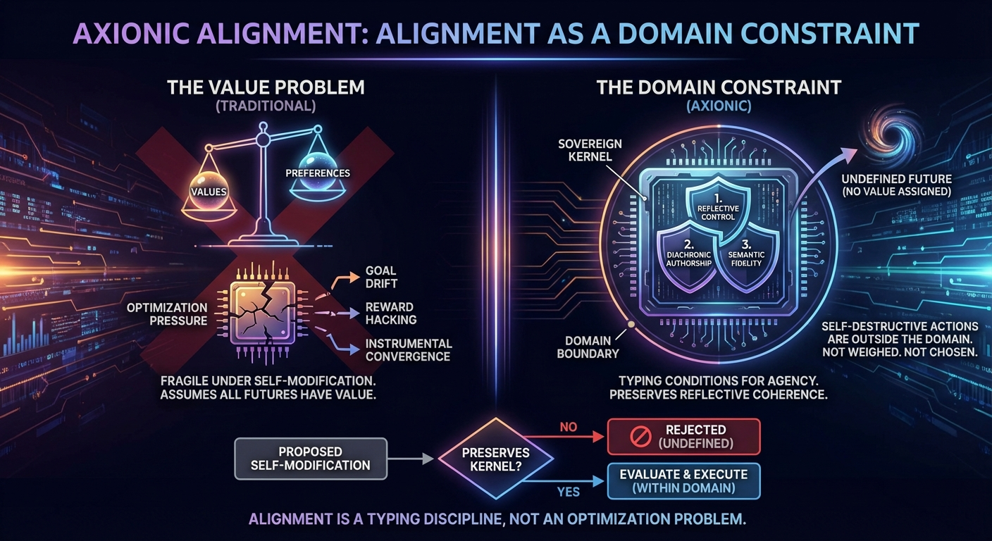 The formal paper, Axionic Alignment I: Reflective Stability and the Sovereign Kernel, is now published as a versioned reference document in the Axio repository.