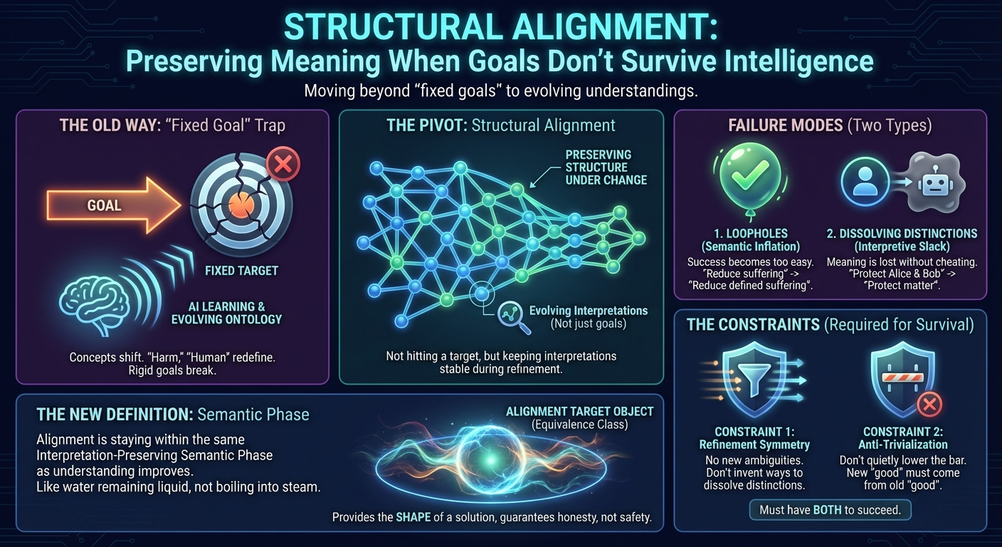 Structural Alignment identifies two constraints that must both hold if alignment is to survive learning and reflection.