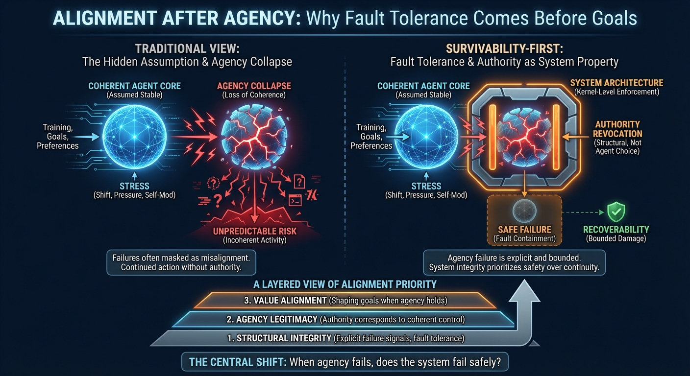 Alignment becomes a survivability problem. The focus moves from uninterrupted optimization to fault containment.