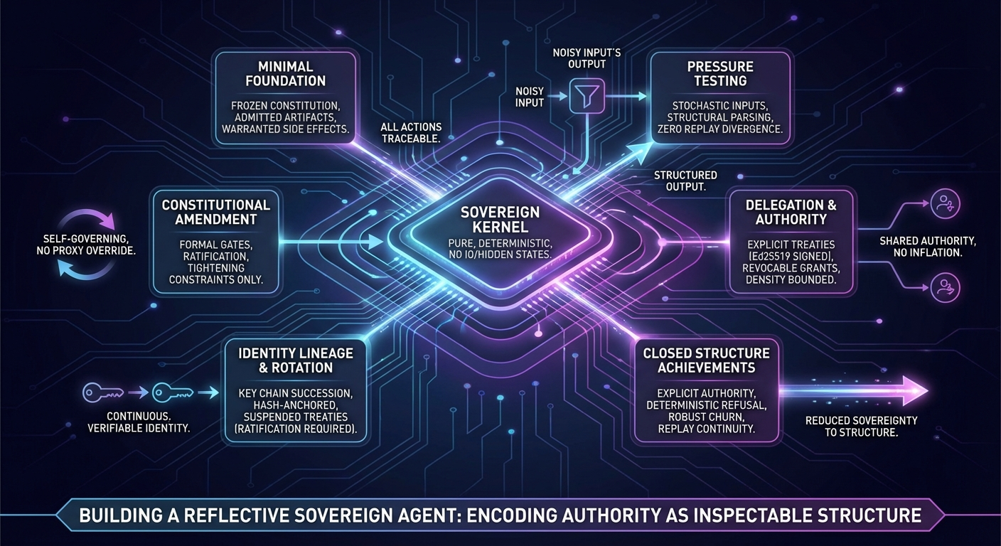 The objective was to see whether sovereignty — real, explicit, inspectable authority — could be encoded as structure. Not as intent, not as personality, not as behavior that “seems aligned,” but as a set of constraints that are impossible to bypass without leaving a trace.